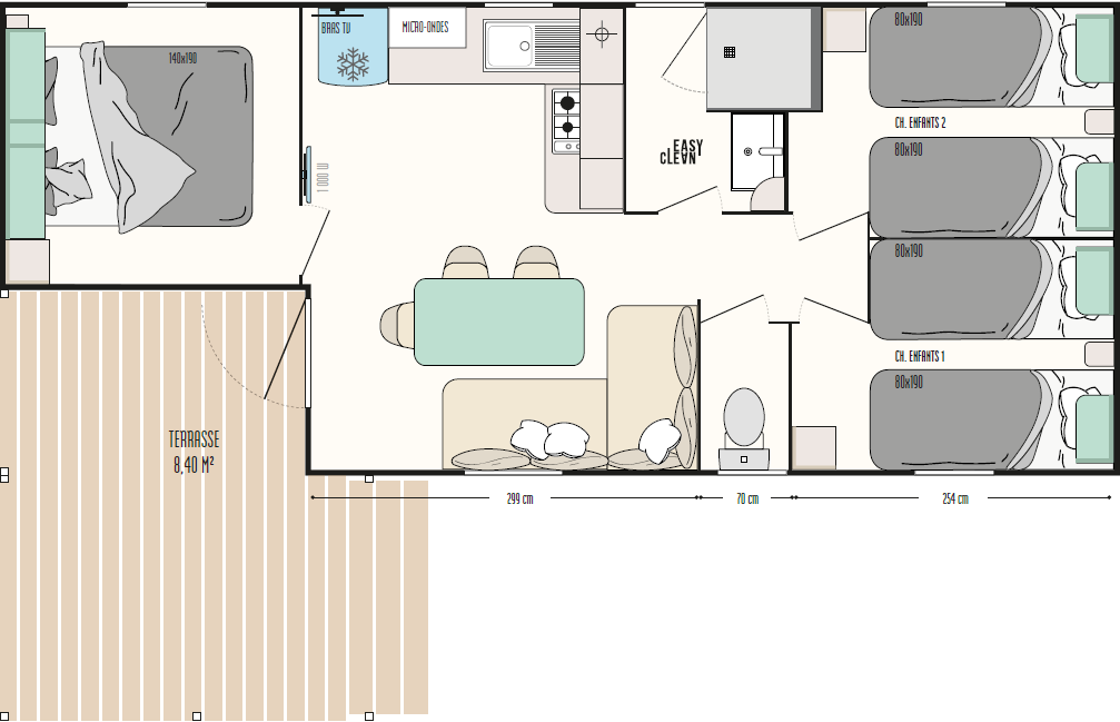 Bénéficiez d’un logement indépendant à proximité des thermes du Mondony et concentrez-vous sur votre cure, nos mobil-homes vous feront sentir comme chez vous!