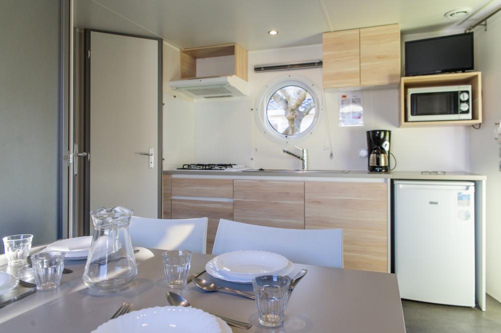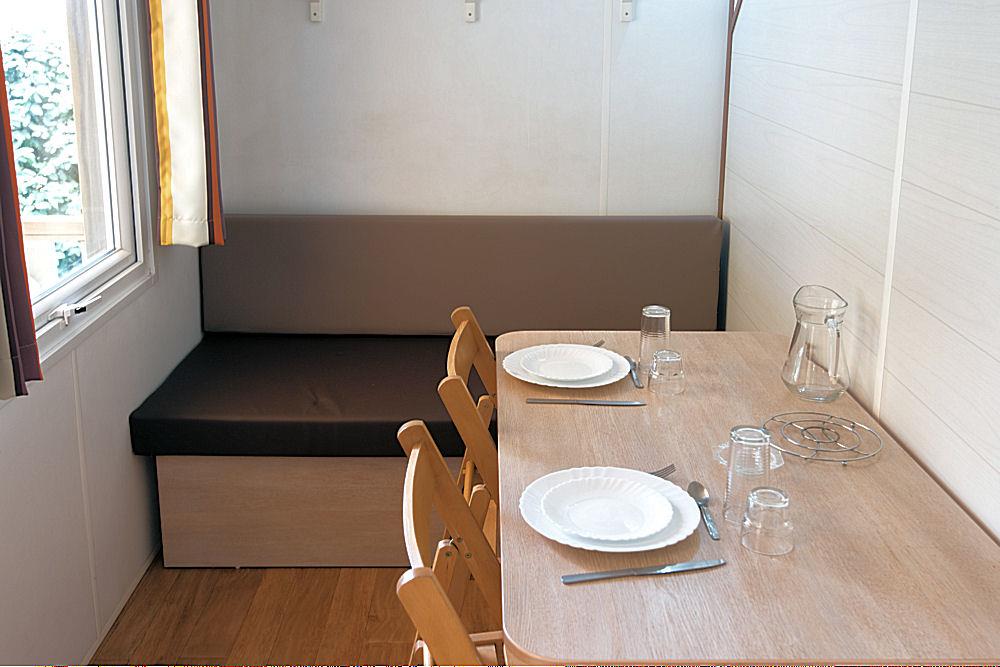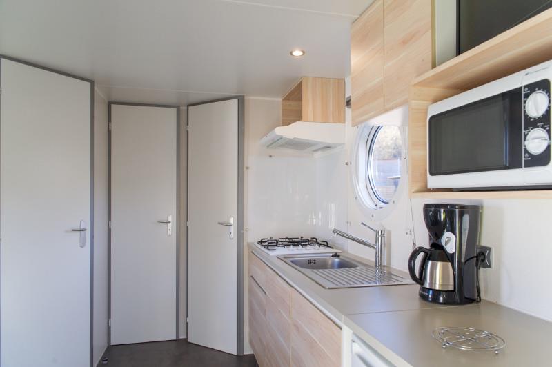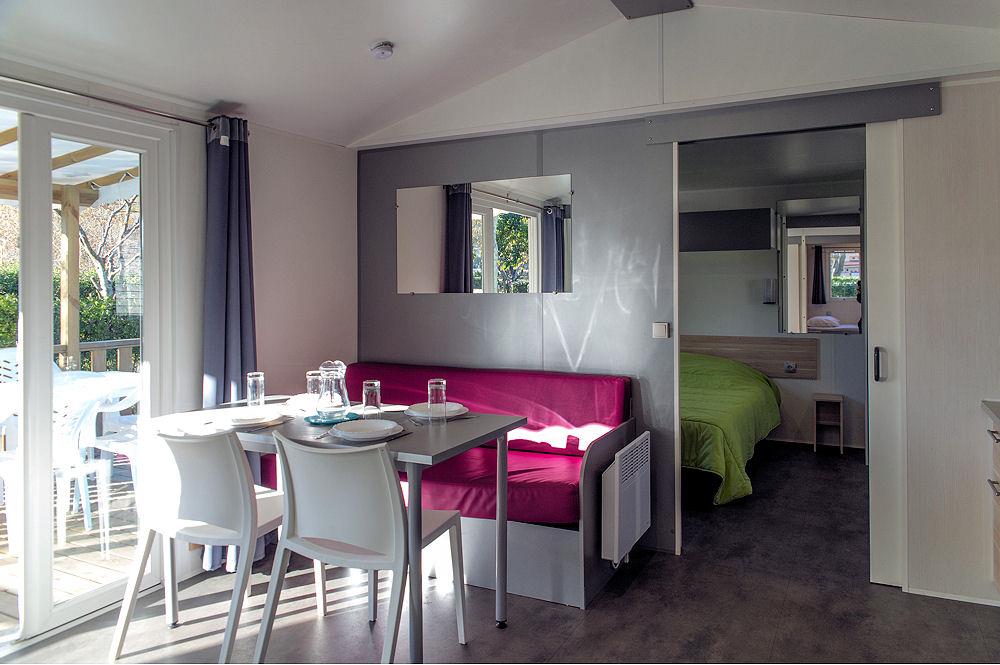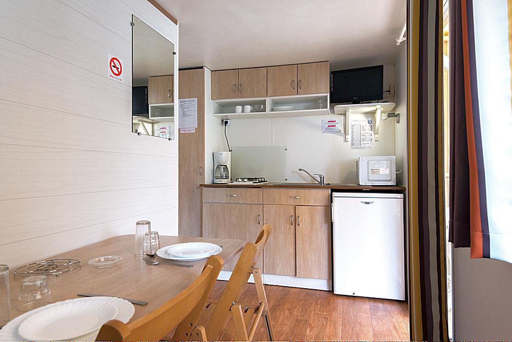 The accommodation in the Primevère range is 22 m2 for 4 people. The Coscoll mobile homes are 27 m2 with an integrated terrace of 7 m2.
