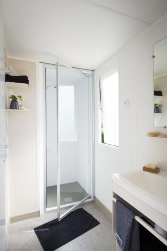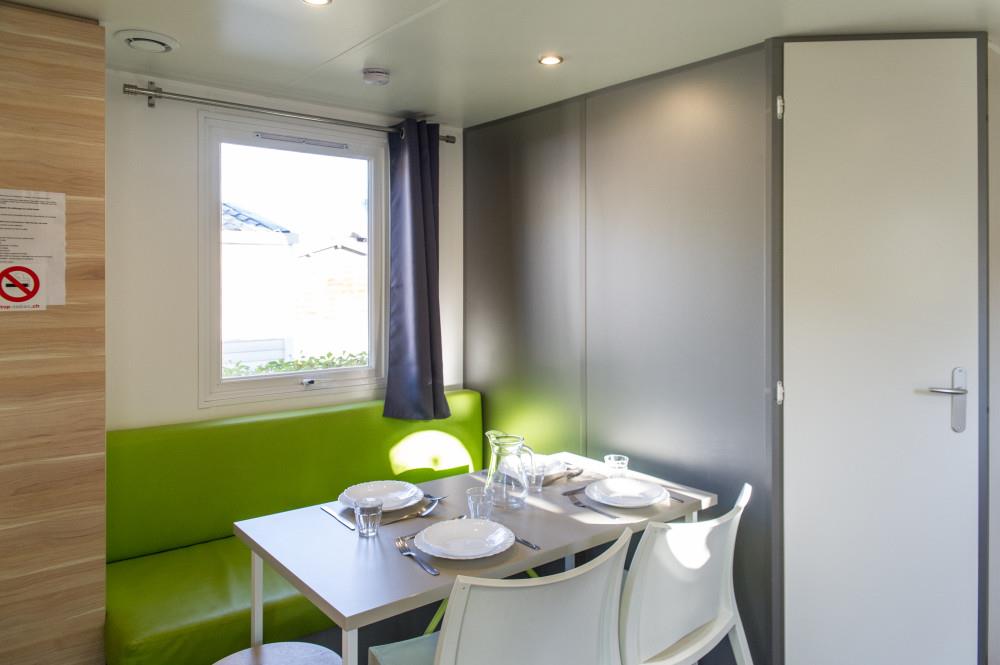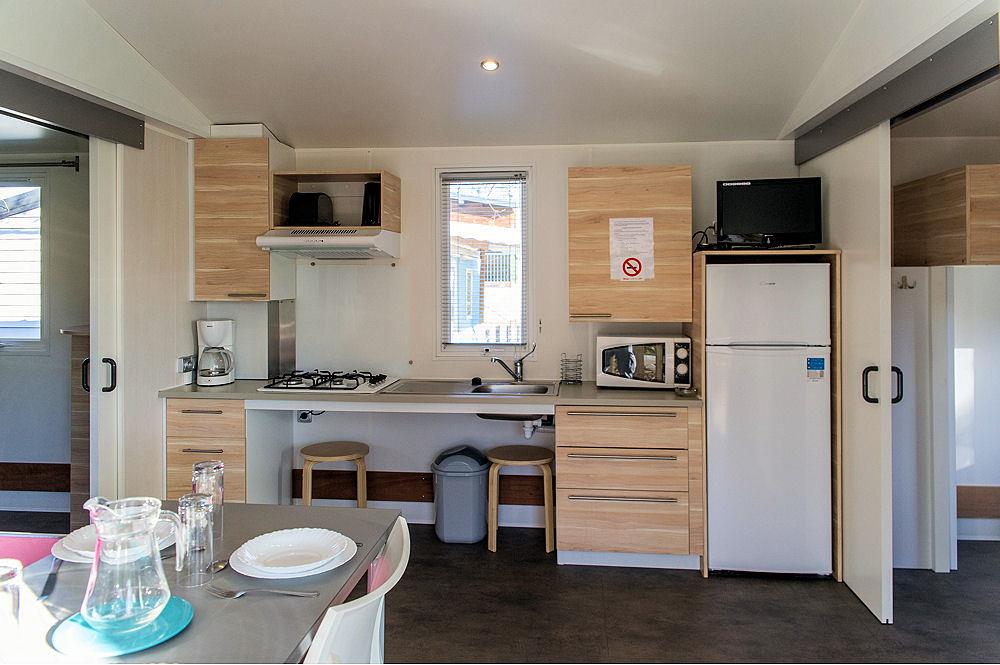 Los alojamientos de la gama Primevère tienen 22 m2 para 4 personas. Las casas móviles Coscoll tienen 27 m2 con una terraza integrada de 7 m2.